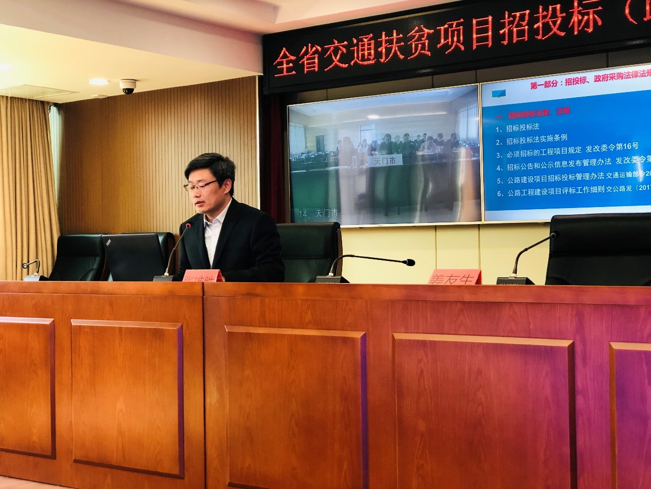 3月14日,湖北省交通運(yùn)輸廳在武漢組織開展了全省交通扶貧項(xiàng)目招標(biāo)(政府采購(gòu))法律法規(guī)宣貫培訓(xùn),旨在落實(shí)中央脫貧攻堅(jiān)專項(xiàng)巡視整改要求,加強(qiáng)交通扶貧項(xiàng)目招投標(biāo)管理。廳黨組成員、副廳長(zhǎng)姜友生主持會(huì)議,廳建設(shè)管理處陳飚處長(zhǎng)和機(jī)關(guān)有關(guān)處室人員參加現(xiàn)場(chǎng)會(huì),湖北省12個(gè)市(州)交通運(yùn)輸局、各縣(市、區(qū))交通運(yùn)輸局,省公路局、省港航局、省運(yùn)管局、廳質(zhì)監(jiān)局、廳信息中心人員參加視頻會(huì)議。華杰公司招標(biāo)二部經(jīng)理張雄勝受邀擔(dān)任此次培訓(xùn)的主講。