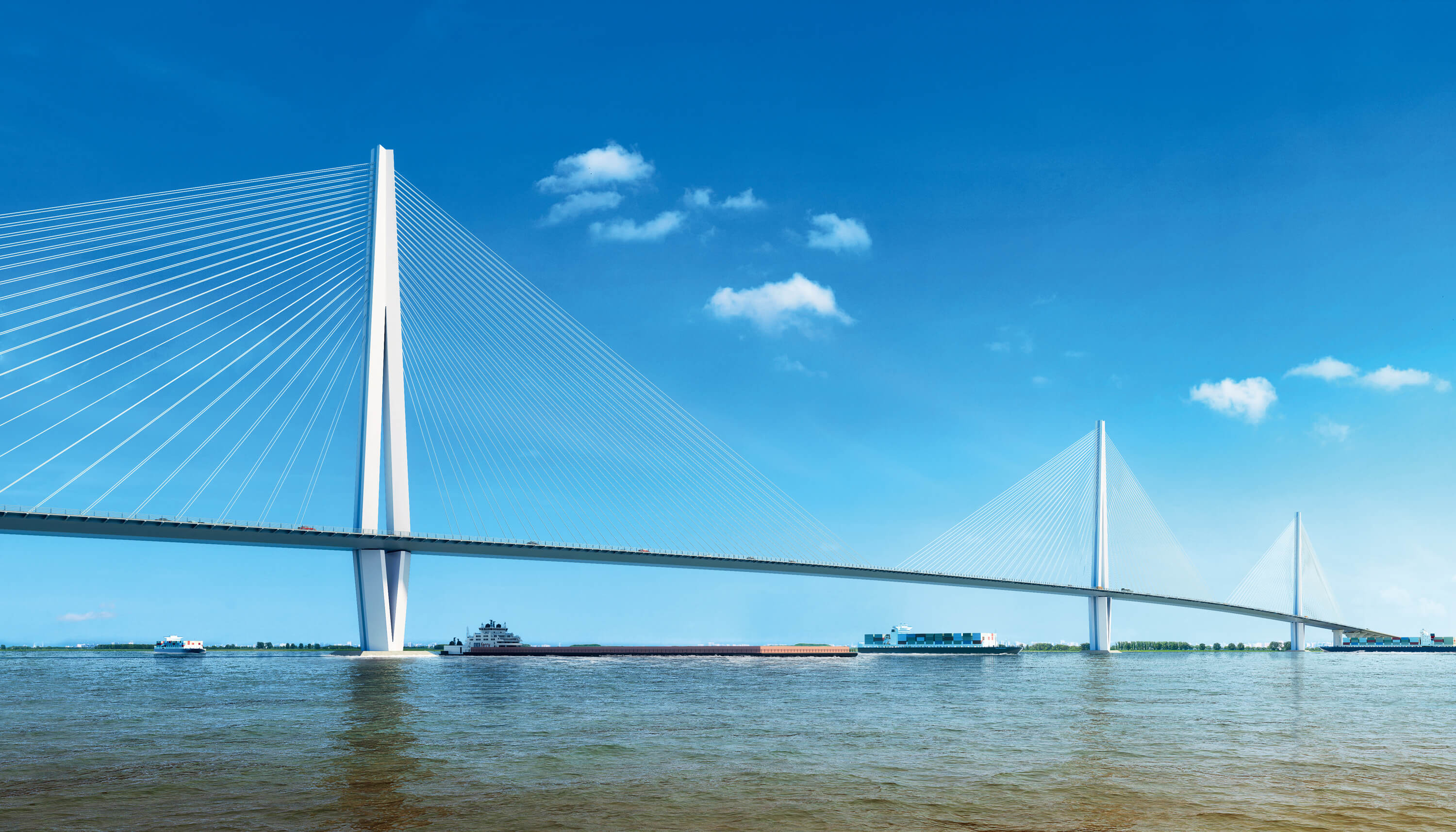 南京長江五橋是 205 國道和 312 國道的過江通道,同時(shí)也是南京“高快速路系統(tǒng)”中繞城公路的重要組成部分。項(xiàng)目按雙向六車道一級公路標(biāo)準(zhǔn)建設(shè),全長約10.33 公里,其中跨長江大橋長約 4.4 公里,夾江隧道長約 1.8 公里,采用三塔兩主跨中央雙索面設(shè)計(jì),主跨跨徑達(dá)到600 米,是世界首座輕型鋼混組合結(jié)構(gòu)斜拉橋。大橋橋跨長、交通量大、互通立交設(shè)計(jì)復(fù)雜,交通安全設(shè)計(jì)極為重要。